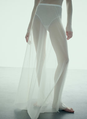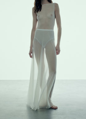Influenced by shadows and light, the brand designs elegant, timeless silhouettes to create opacity through transparency.