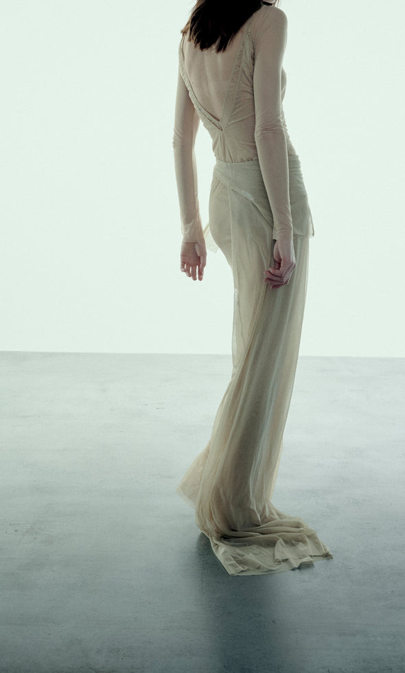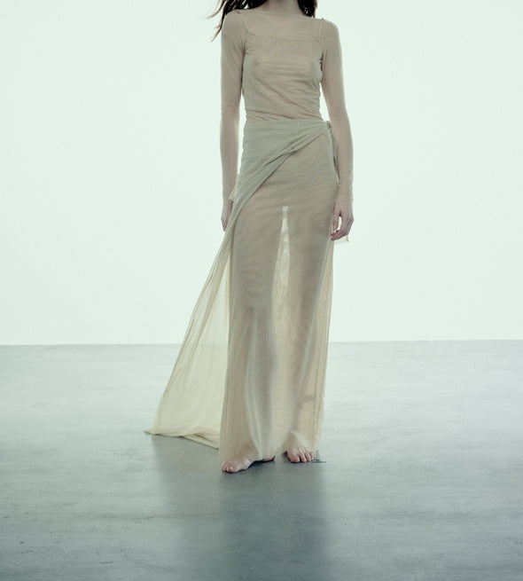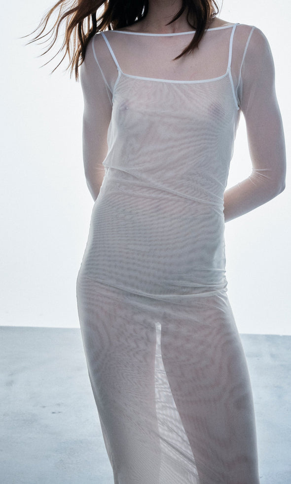 Part of the midwear collection, an update to the popular Long Sleeve Dress from Collection No1, this light and delicate dress can be worn alone or as a layering piece.