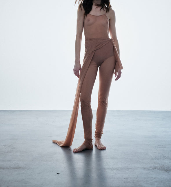 The Body Suit is the perfect layering piece to add dimension to any outfit, made of fine tulle the Body Suit is available in Clay and Black.