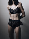 The Lace Hotpant is an essential item. Offering coverage and support they can be worn under any of the main collection pieces to create opacity and movement.