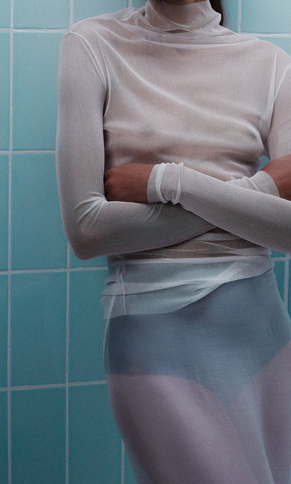 The delicate, sheer Kate Skirt is made with 100% silk. It can be worn on top of our long sleeve dress to create opacity, or simply layered on top of swimwear for a chic holiday outfit.