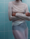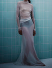 The delicate, sheer Kate Skirt is made with 100% silk. It can be worn on top of our long sleeve dress to create opacity, or simply layered on top of swimwear for a chic holiday outfit.