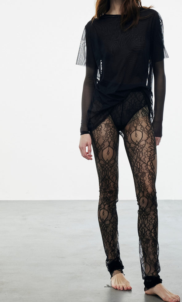 New for Collection No2, the Lace Leggings in black floral lace are a versatile piece that can be worn alone or under any other item in the collection to add depth and coverage.