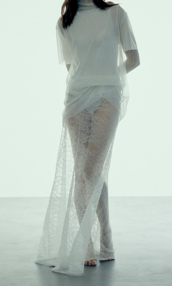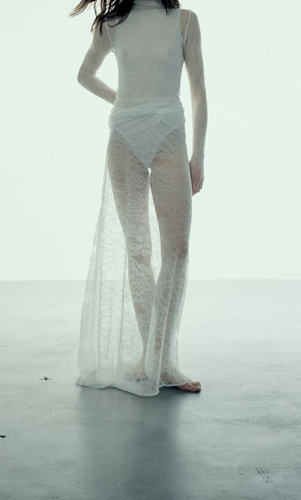 Flowing, delicate lace makes this skirt the perfect piece, flattering for any body shape it can be worn alone or layered over any other item in the collection.