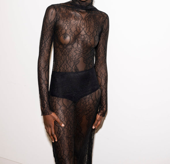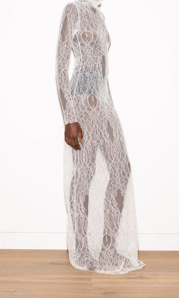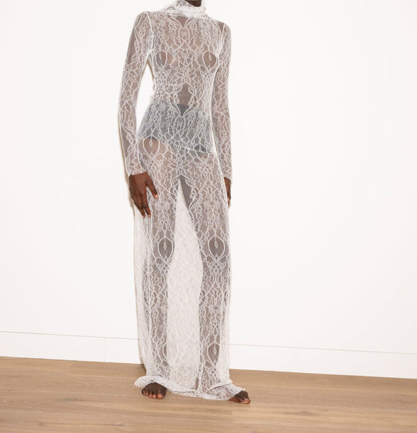 The Long Sleeve dress in exclusive 100% French lace is delicate and graceful, can be worn alone or as a layering piece
