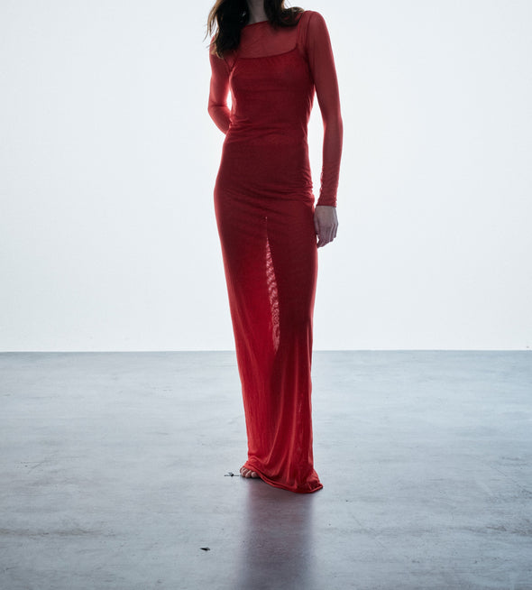 Inspired by the Long Sleeve Dress from Collection No1, the Strappy Dress in tulle features thin straps and a low back which offers versatility. Wear alone or layered with any other item in the collection to add depth and movement.